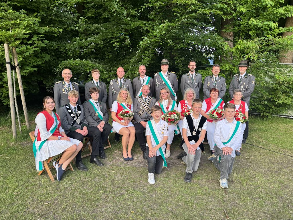 Bekannte, aber auch jede Menge frische Gesichter schmücken das volle Königshaus am Samstag, den 31. Mai 2025 unter König Detlef „Der Entspannte“ Pape und der Damenbesten Marlies Jech.